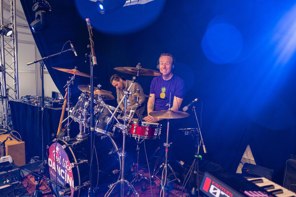 Na een aantal jaren les, en drummen in andere bandjes, werd het even rustig met met de hobby. Dat voelde onrustig. Toen er werd gevraagd of ik zin had om bij Feel Like Dancing Partyband te drummen, hoefde ik niet lang na te denken; wat een een fijne muzikanten!