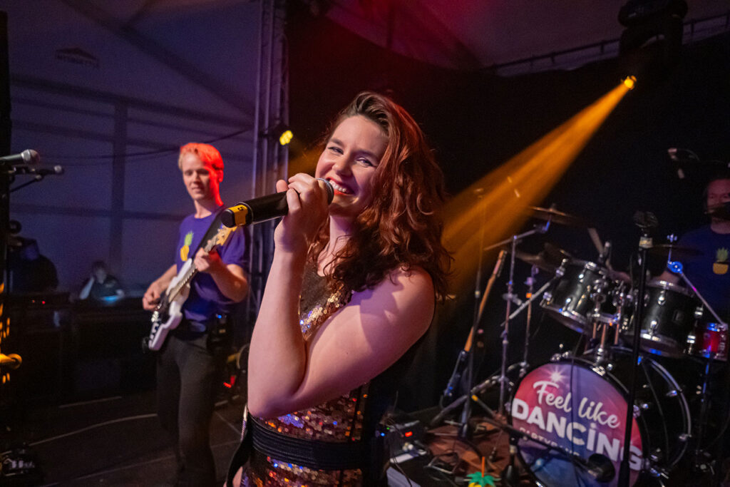 Of het nu musical-, Franstalige of onze toffe feel good nummers zijn; ik zing het liefst elke dag, de hele dag! Wat een geluk heb ik dan ook, dat ik samen met zulke getalenteerde muzikanten van Feel Like Dancing Partyband op het podium mag staan om het publiek een onvergetelijke avond te bezorgen! Dat geeft zoveel energie, ik kijk nu alweer uit naar het volgende feestje! Zie ik je daar?